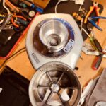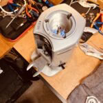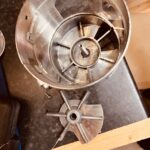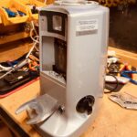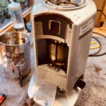 One is considerably newer than the other with slightly different design. The lids have different designs, but most notably is the switch which comes in either a push to start version, or a timer version. These two machines had different switches. The intention is to put one of these grinders on a separate grind timer device, so using the one with a timer switch made more sense as this can be easily adjusted to stay ‘on’ permanently’ without modding or cutting the case of a new switch.